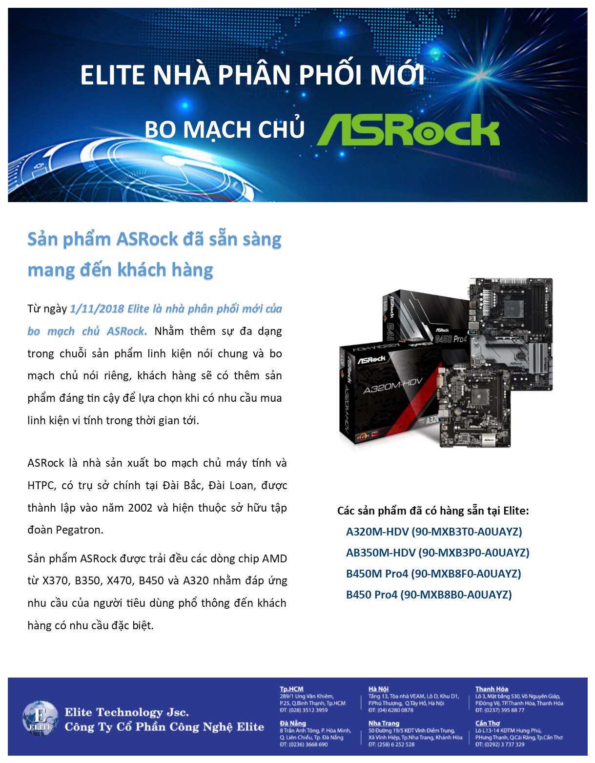 Thông báo Elite phân phối sản phẩm bo mạch chủ ASROCK